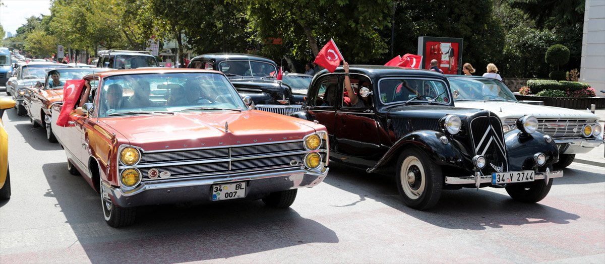 Kadıköy merkezli İstanbul Klasik Otomobilciler Derneği (İKOD) üyeleri, 30 Ağustos Zafer Bayramı’nın 95. yıldönümünde Türk bayraklarıyla süslenmiş klasik araçlarıyla konvoy oluşturdu. Milli birlik ve beraberliğe, toplumsal barışa katkı sunmak amacıyla Türk bayraklarıyla süslenmiş yaklaşık 100 klasik araç, Zafer Konvoyu’nda bir araya geldi.