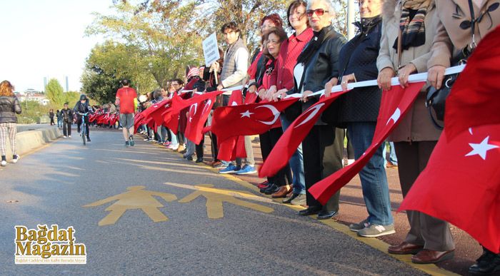 Sabahın erken saatlerinde 7’den 77’ye binlerce kişi tarafından Fenerbahçe-Bostancı sahili yürüyüş yolu arasında oluşturulan dev saygı zinciri, 6 buçuk kilometreyi buldu. Saat 9’u 5 gece ise, Kadıköy’de adeta tüm hayat durdu. Saygı duruşundan sonra vatandaşlar hep birlikte dev bir Türk bayrağı açarak, andımızı okudu. Denizde bulunan bazı tekneler de Türk bayraklarıyla gösteri yaptı.