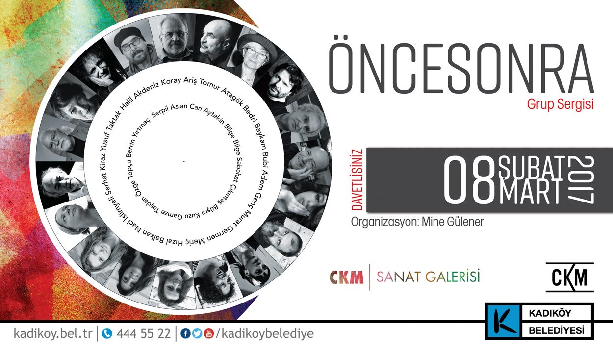 Caddebostan Kültür Merkezi, Mine Sanat Galerisi sahibi Mine Gülener’in organizatörlüğünde 19 sanatçının katılımıyla düzenlenen “ÖNCESONRA” adlı karma sergiye ev sahipliği yapıyor. 8 Mart 2017 tarihine kadar ziyaret edilebilecek sergiyi sanatseverlerin kaçırmamalarını tavsiye ediyoruz.