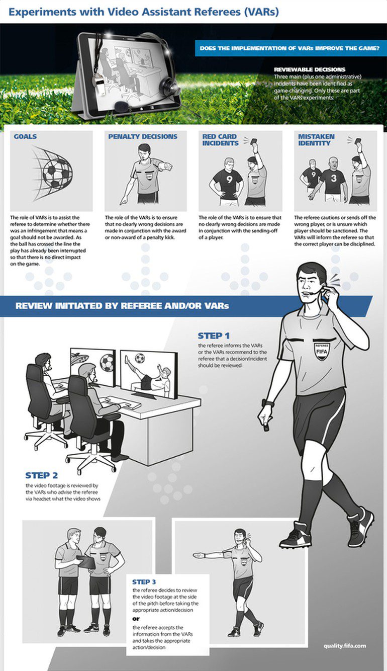 Dünya futbolunun markalarından FİFA, hataları azaltmak için “Video Hakem” teknolojisini denemeye karar verdi. Uluslararası Futbol Birliği Kurulu (IFAB) ve FIFA’nın katılımı ile bu yıl 130.’su düzenlenen Yıllık Genel Toplantı’da alınan karara göre, en geç 201-2018 sezonu itibariyle bazı liglerde Video Hakem teknolojisi devreye girecek.