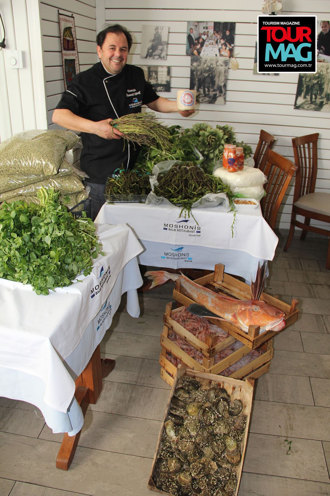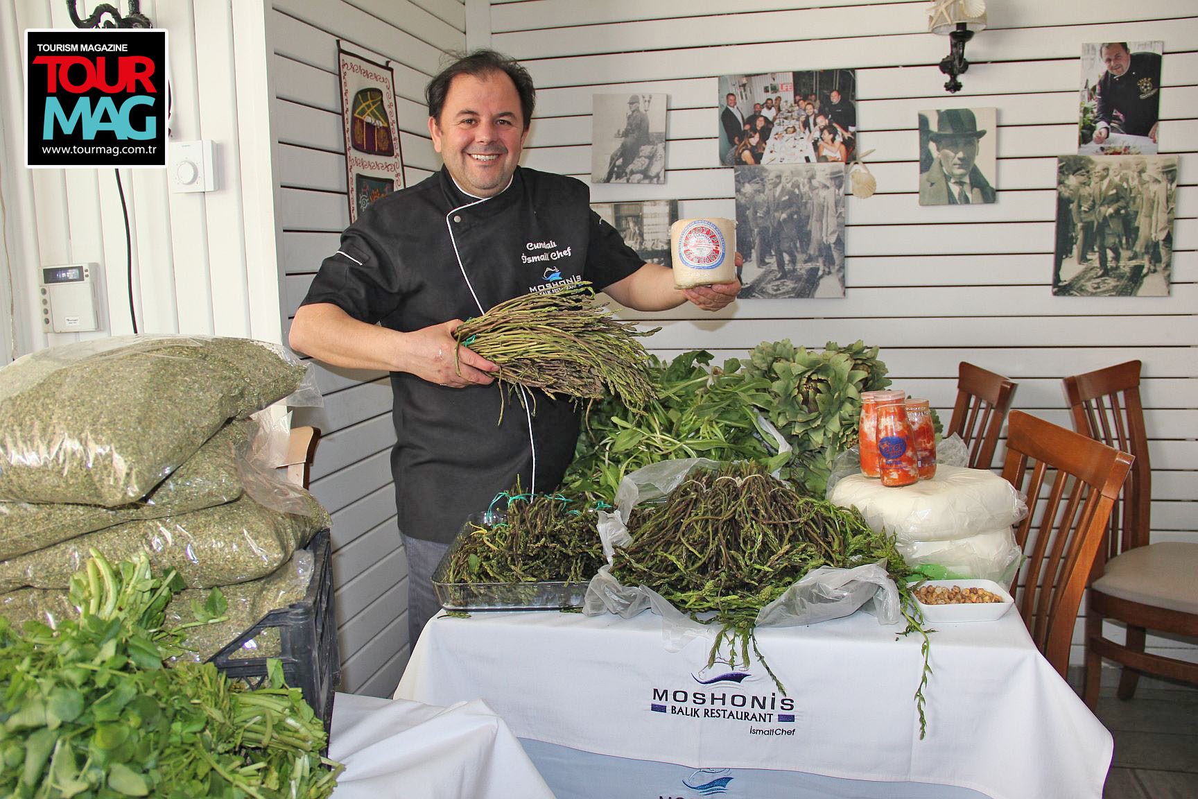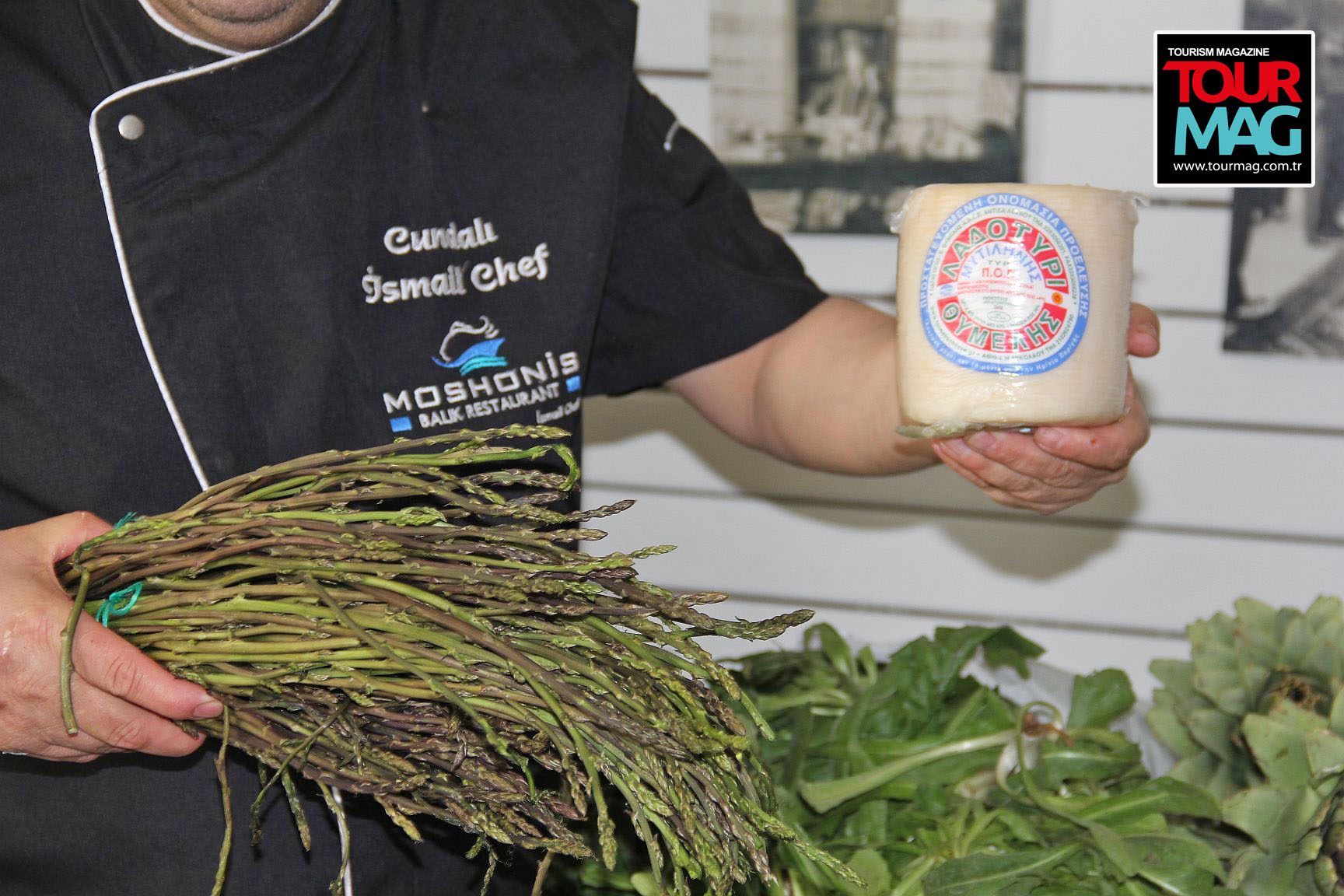 “Aşçılık sanat, yemek aşktır. Gerçek bir yemeği lezzetli yapan ise, malzemelerinin yetiştiği bölgelerin karakteristik özellikleridir” diyen İsmail Şef, Ayvalık Cunda ve Yunan Adaları’ndan yine hayli ağır bir yükle geldi. Ayvalık’ın tanınmış balıkçısı Cundalı Metin Akın, İsmail Şef’in lezzet yolculuğunda en yakın arkadaşlarından. Filia, Kalloni, Skalochori, Sigri ve Eresos; lezzet gezginlerinin en çok uğradığı Yunan yerleşkelerinden…