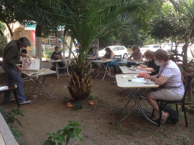 Etkinliğe katılarak kahve ile suluboya çalışmaları yapan katılımcılar, yaşadığımız pandemi sürecinde az da olsa sanat adına bir nefes olduğunu belirttiler.
